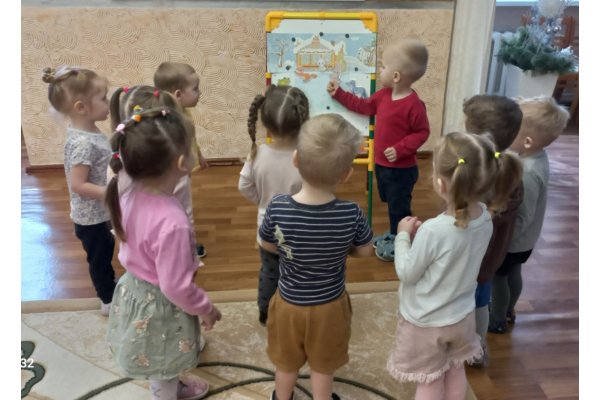 В рамках реализации образовательного проекта "Город, в котором я живу" были проведены музыкальные занятия, квест-игра "Мой родной Волковык". В ходе проведения мероприятий воспитанники рассказывали Путешественнику о своём родном городе, его основных достопримечательностях, слушали главную песню города и его звуки, исполняли песни, играли и танцевали и др.