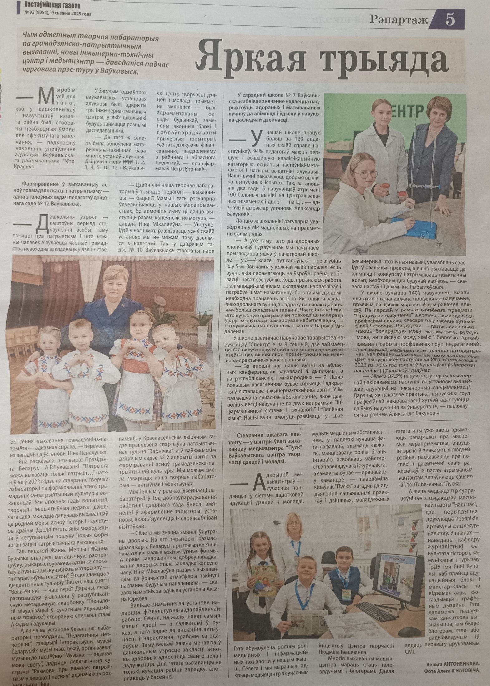 Главная Новости "О нас пишут в газете!" "О нас пишут в газете!" 12 декабря 2025 Інжынерна-тэхнічны цэнтр і творчая лабараторыя: чаму вучаць юных жыхароў Ваўкавыска