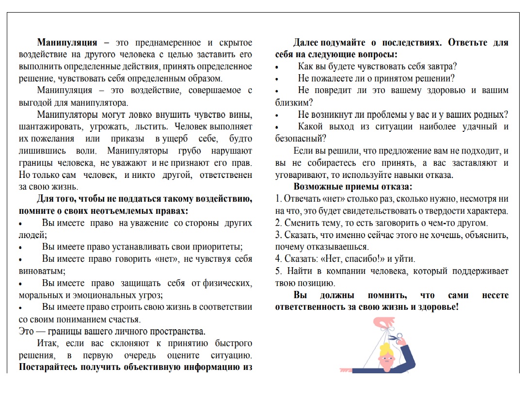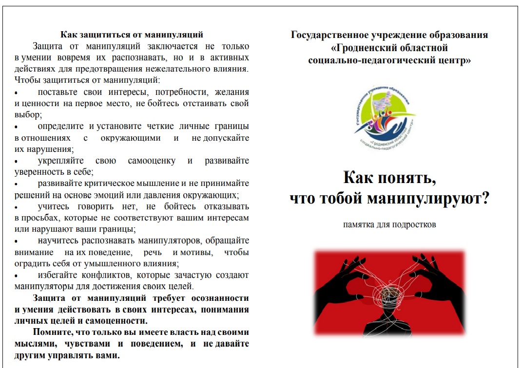 Главная Новости Памятка "Как понять, что тобой манипулируют?" Памятка "Как понять, что тобой манипулируют?" 14 октября 2025